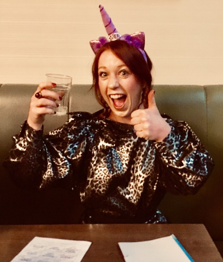 We very much enjoyed the musical bingo. You have to give it to bingo, it may be an old classic, it may even be a bit of a cliché, but it it’s always a winner and the musical twist at least got us into the spirit of the evening. Although being competitive, I did keep forgetting that people had already crossed the thresholds of the game before I did, and found myself very nearly waving my card on several occasions. Maggie was luckier, and a fantastic rendition of a ‘snake’ involving an exuberant version of her signature dance move, ‘the worm’ earned her a lovely unicorn headband, which she wore with pride for the rest of the night. And the next day to drive home, much to the amusement of onlookers.